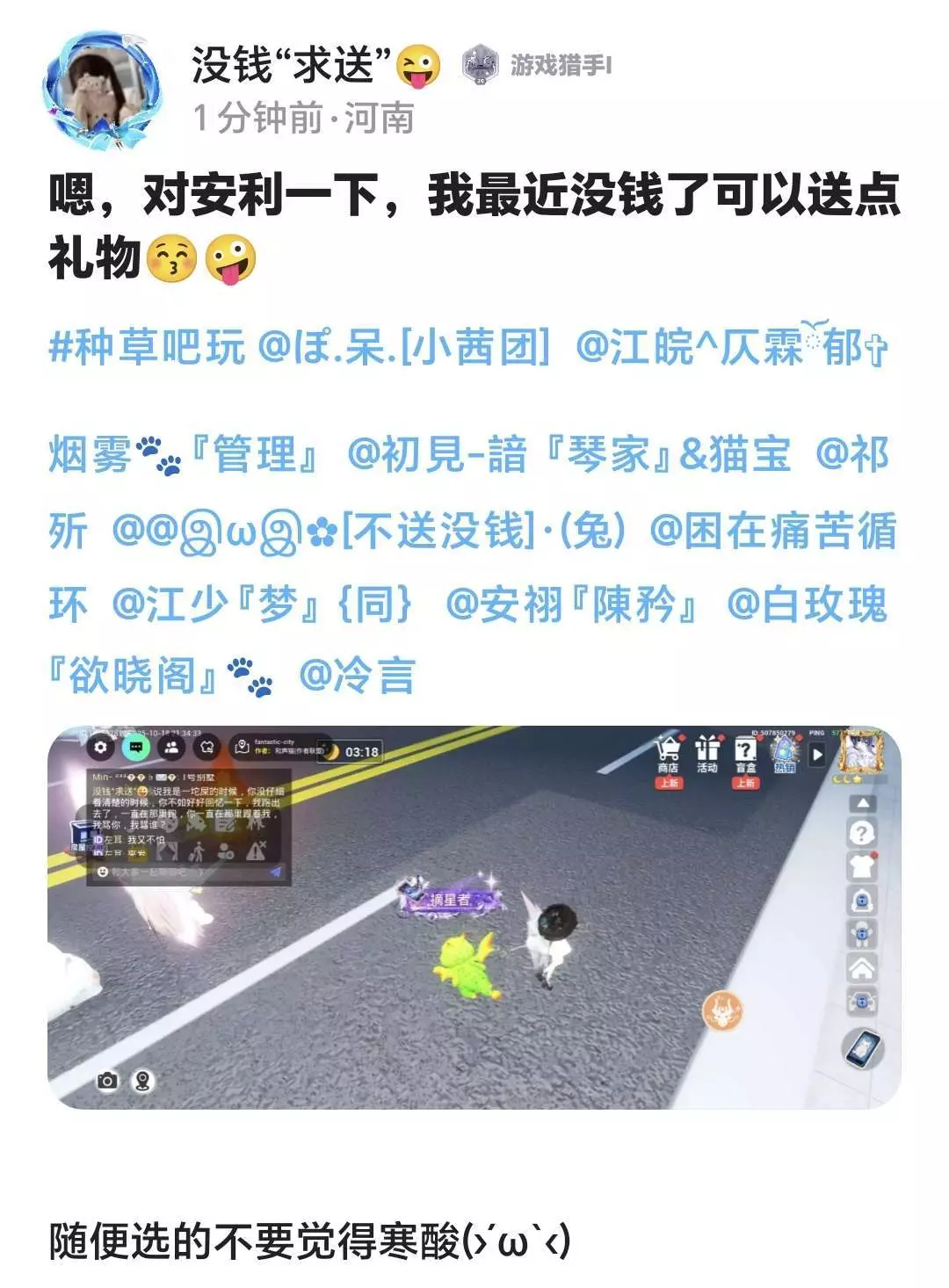 没钱“求送”😜