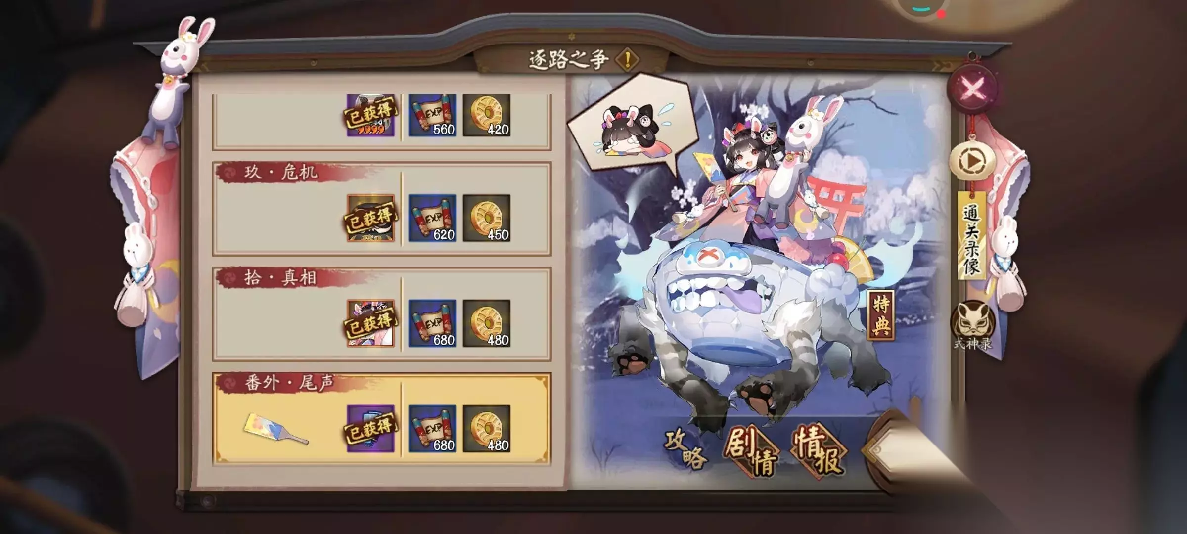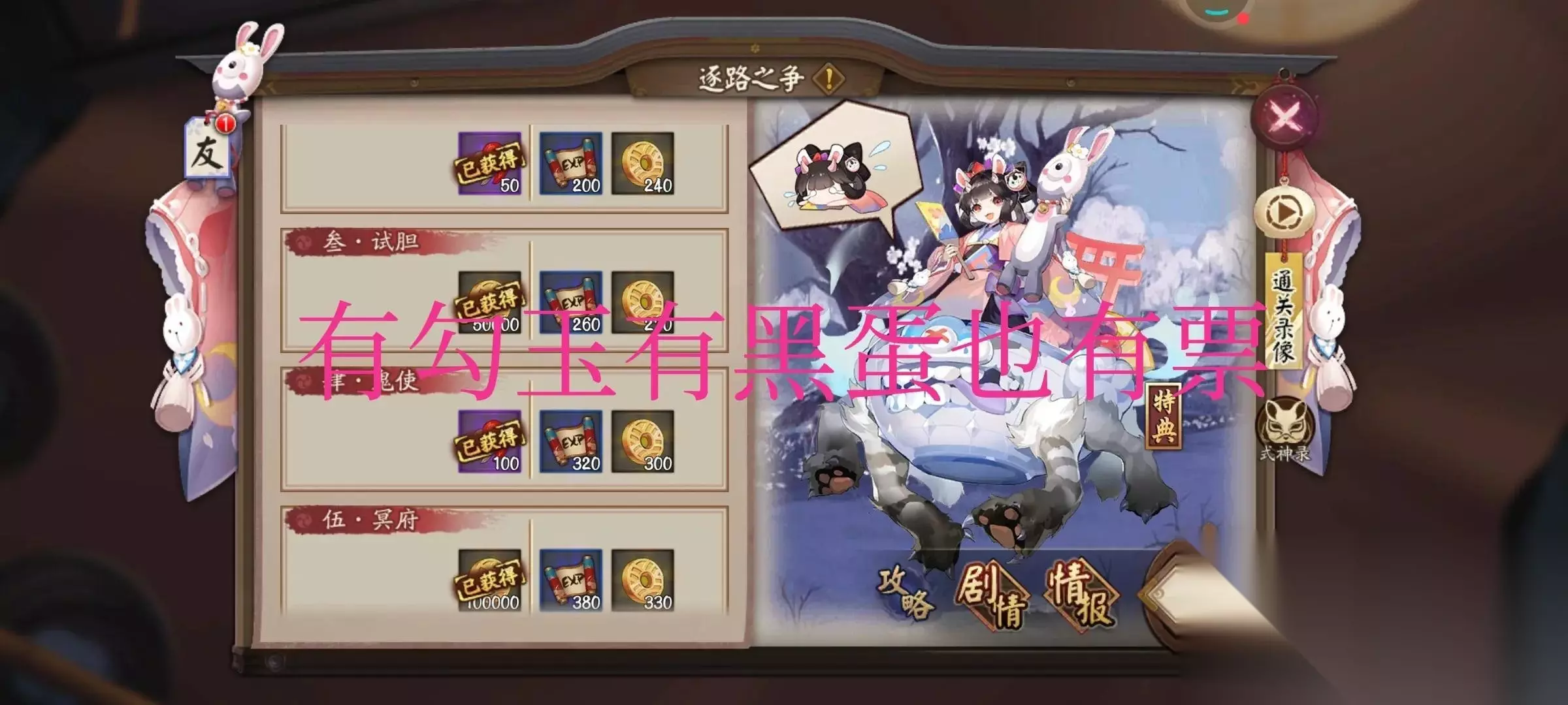5、秘闻竞速 秘闻竞速打完每周都有3,4百左右,平均到每天其实不少的。每次打完,偶尔还能拿个排名勾玉,那就更多了。