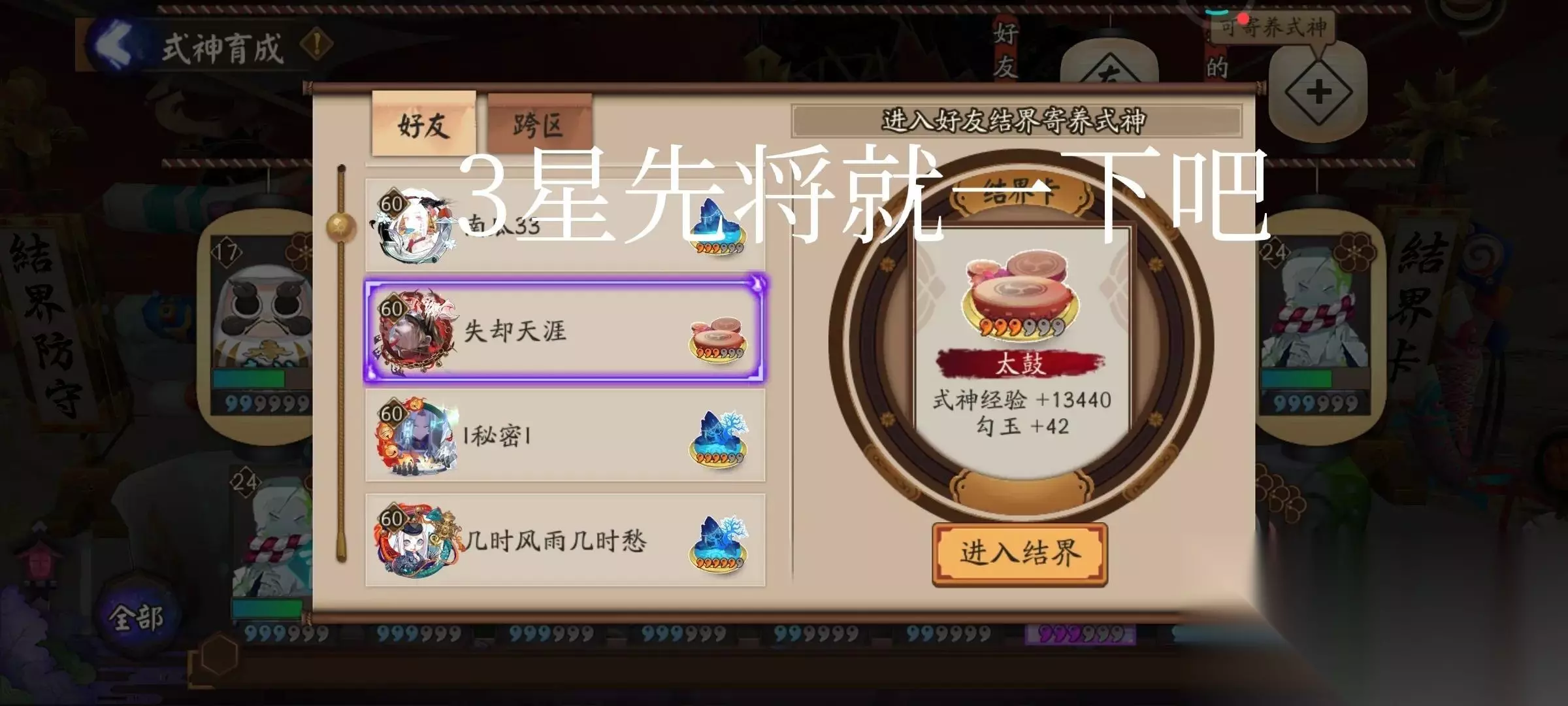 2、式神寄养 这个就是蹭好友的太鼓卡了,纯看运气和好友质量了,如果好友都是大佬级的,那每天都能蹭勾玉的。