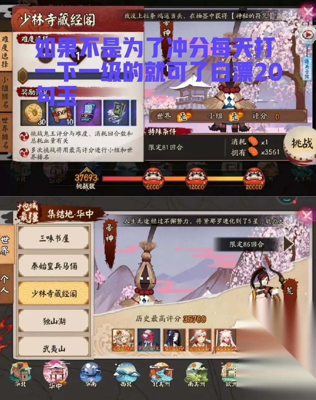 当然你也得勤快,每天挂的次数全看你上线的频率了。运气好的话一次67勾玉,运气好一天2到3次还是有希望的。 3、地域鬼王 地域鬼王是每天固定有勾玉的,哪怕你就是打1级难度的,找热门满奖励的,每天勾玉都固定有的。