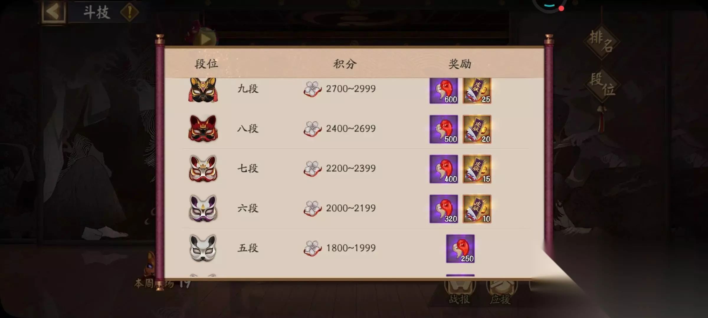 6、每日逢魔 每天坚持到逢魔,勾玉都是有的,偶尔还能答题得勾玉,其实这个量也不少了。 7、每周斗技低保 没事模式下斗技阵容,拿点低保勾玉,不说多,每周几百勾玉也不错的。 名士700勾玉、九段600勾玉、八段500勾玉,七段400勾玉。 这个斗技能打的话算不少了。
