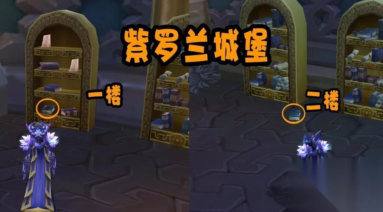 首先是达拉然的紫罗兰城堡内会刷新两本,进入城堡大厅后,右手边有两个书架, 其中左侧书架的最底层会刷新《奥术魔法的学派——召唤》,接着在紫罗兰城堡的楼梯上方左手边,也就是时光之穴传送门旁边,两个书架的地上会刷新《魔法奥数的学派—占卜》。