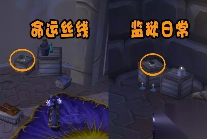 接着在达拉然命运丝线的二楼阳台处,可以看到有几个木箱子,其中一个箱子上方就会刷新《魔法奥数的学派—增强》,在达拉然监狱接日常的地方,也就是坐标(64,53)处,角落的木箱上会刷新《魔法奥数的学派—幻象》。
