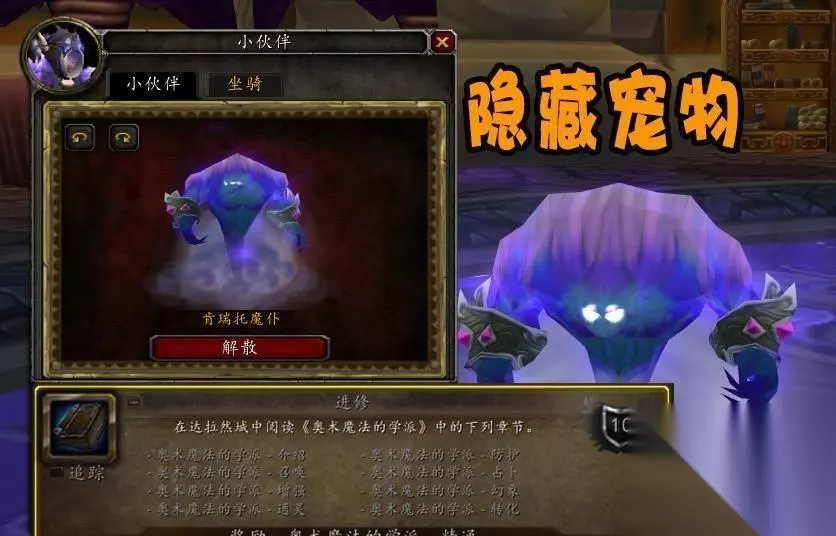 至此,找到以上八本书籍就能解锁“进修”的成就了,同时玩家的邮箱会收到一封邮件,打开后可以获得一个可传送的道具,使用后会传送到紫罗兰城堡顶端的密室,与里面的NPC对话即可获得肯瑞托魔仆小宠物。