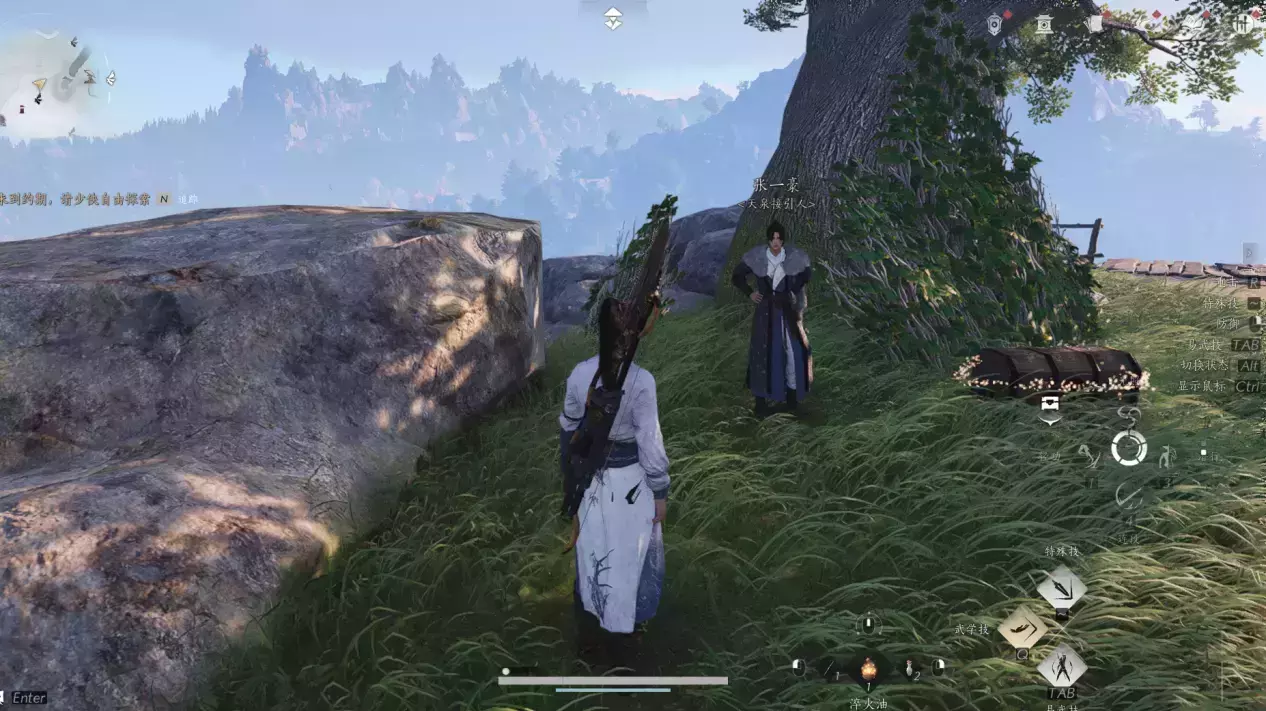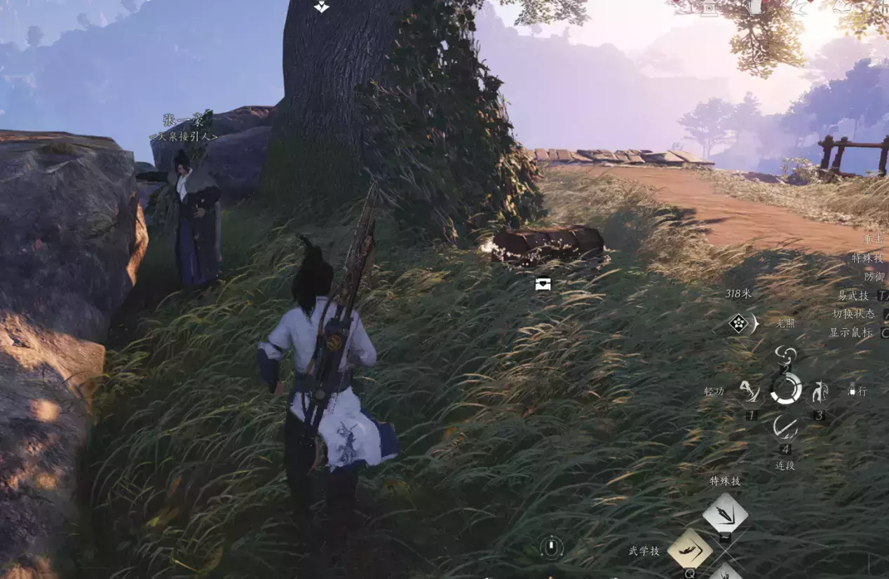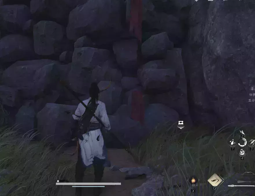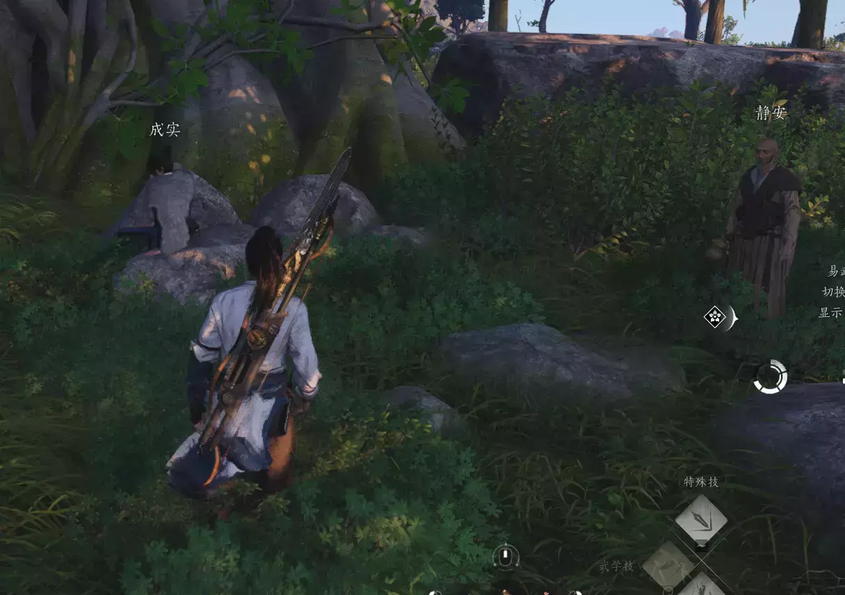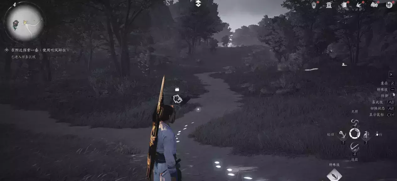 然后回到成实所在的地方,发现这个人已经跑了,然后按V寻找脚印,一路找过去,到任务目的地之后,要在特定的位置先偷听,注意看任务标记位置就可以了。