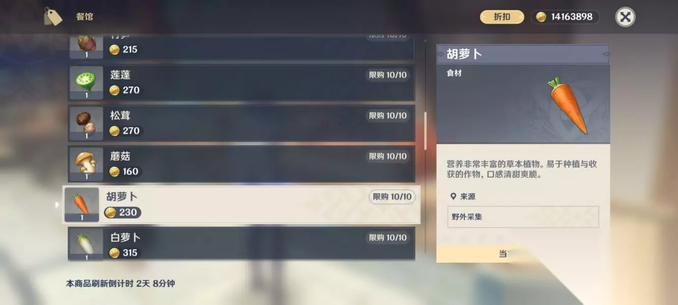 3.去到璃月「璃月港」万民堂找到卵师傅,在这可以买到很多材料,蘑菇/白萝卜……,立本有时候会用到!有需要的可以看一下