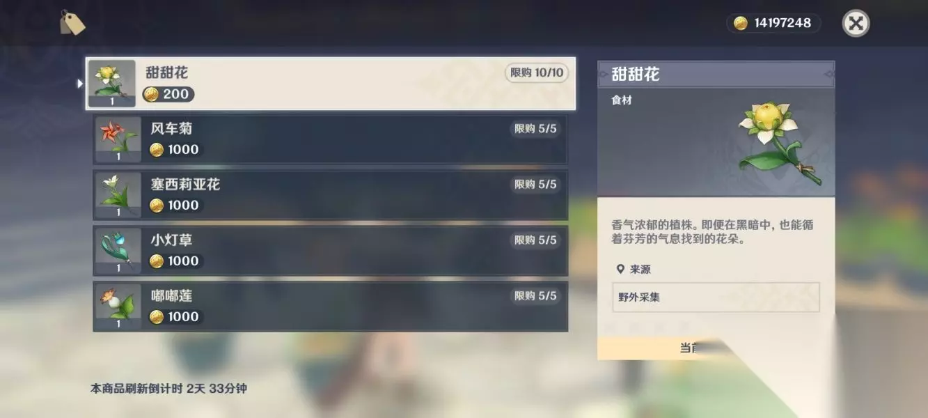 ③可以去风起地东北方向标记点处,从附近传送描点快速到达,找到NPC克罗丽丝,在这里可以买到材料薄荷/钩钩果/落落莓/ 慕风蘑菇