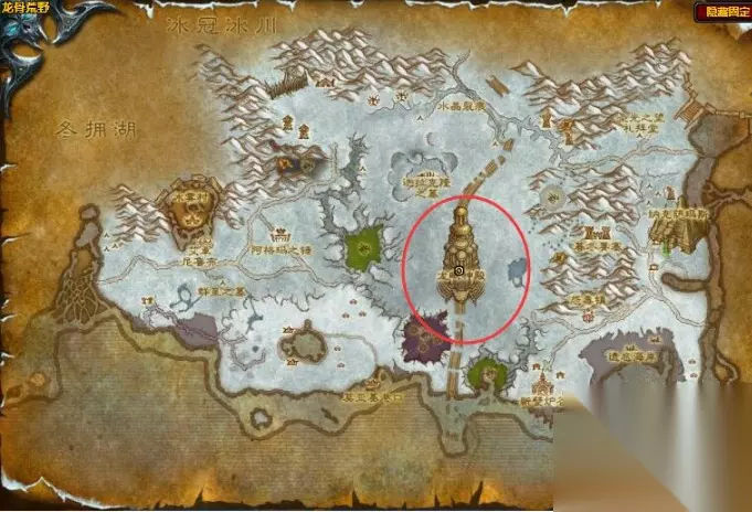 5、展翅高飞需要玩家骑着幼龙击败5个鳞誓精英,详细的位置在北方苔原考达拉的魔枢,如下图所示。