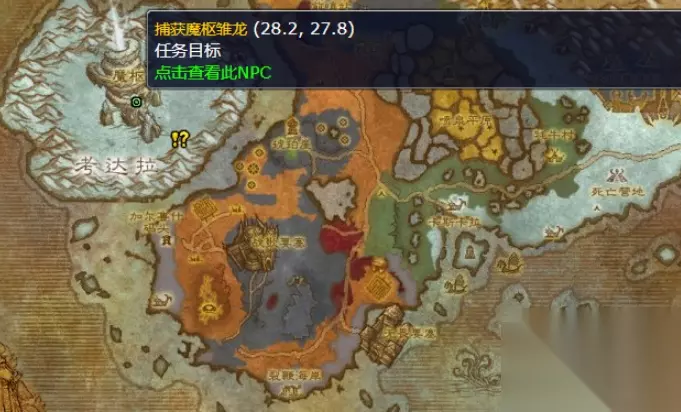 3、日常任务猎龙需要玩家使用莱洛拉斯要你使用他的长矛驯服一只魔枢雏龙,详细位置位于北风苔原如下所示。