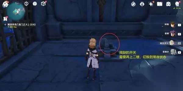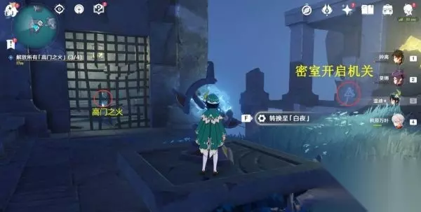 调到常夜状态后,下来攻击石门机关,石门移动,第二个「高门之火」即完成。
