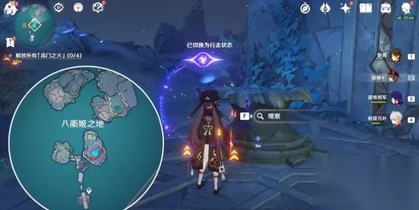 14.传送上来后,看到有个池子,如下图,点观察,可以看到「高门之火」大致位置。
