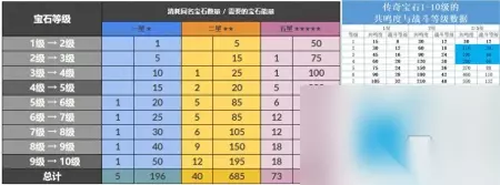 是宝石的升级和培养,这方面是给氪金小八千的低氪玩家的建议。因为传奇宝石升到10级可以用一颗一百人民币的觉醒石觉醒,所以零氪玩家就不要想觉醒共鸣什么的。首先要明确一点:二星宝石不用升到满级,5级即可。至于原因,且看下图。二星升到满级所需的宝石能量足够把一颗五星传奇宝石升级到5级,而一颗五级五星传奇宝石带来的战斗等级和共鸣度的提升,远比一颗满级的二星宝石高。