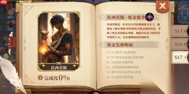 魔渊之刃S17前瞻 全新卡牌与赛季内容曝光 本次赛季推出全新玩法「炼金游戏」,通过完成炼金术挑战,玩家可以赢取大量奖励。 该玩法分为“调剂”和“转化”两个阶段,只有完成全部流程,才能成功获取奖励。 在“转化”阶段中,每点亮一次流程步骤,意味着一次升华失败。若失败次数过多,将导致整个炼金过程失败,无法获得奖励。 当所有步骤完成后,若转化失败次数未超过限制,则根据“调剂”阶段点亮的步骤总数,发放对应奖励。调剂成功次数越多,奖励越丰厚。 未完成的进度将被保留,直到玩家成功完成或彻底失败。 开局时,玩家拥有55%的基础概率,该概率同时影响调剂成功与转化失败的几率,可受拼图效果影响而提升。 每次点亮任一步骤,基础概率下降10%,最低为25%;当任一步骤变为灰色时,基础概率上升10%,最高可达75%。 使用“月亮水”道具可使下一次工序的基础概率提升10%,上限为75%,不可与“硫磺”共用; 使用“硫磺”则会使下一次工序的基础概率下降10%,最低为25%,同样不可与“月亮水”共用; 每道工序都需要消耗一定数量的金币,金币不足时无法继续进行。