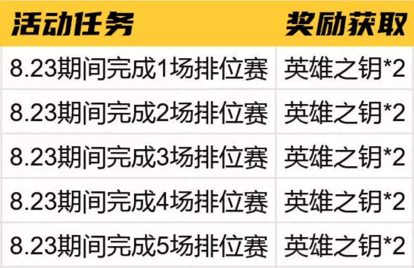 另一个部分为【8.23福利】,需要完成一定数量的排位赛对局才可以领取英雄之钥。