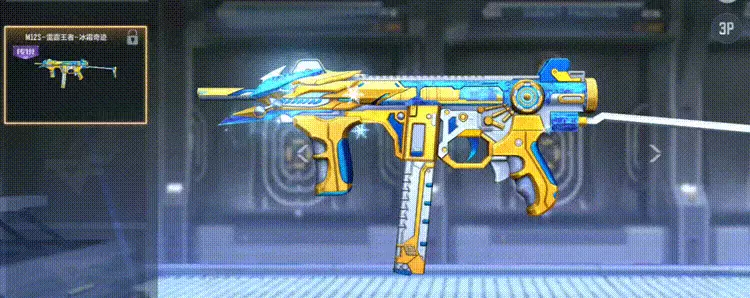 M12S-雷霆王者-冰霜奇迹整体以金色为主色调,象征着王者的尊贵和雷霆的力量,搭配清冷的冰蓝色点缀,营造出一种寒冰凛冽的视觉冲击。枪身线条流畅,细节刻画精致,仿佛被冰霜雕琢而成,散发着神秘的光芒。独特的造型设计,将科技感与奇幻元素巧妙结合,赋予了M12S-雷霆王者全新的生命力。
