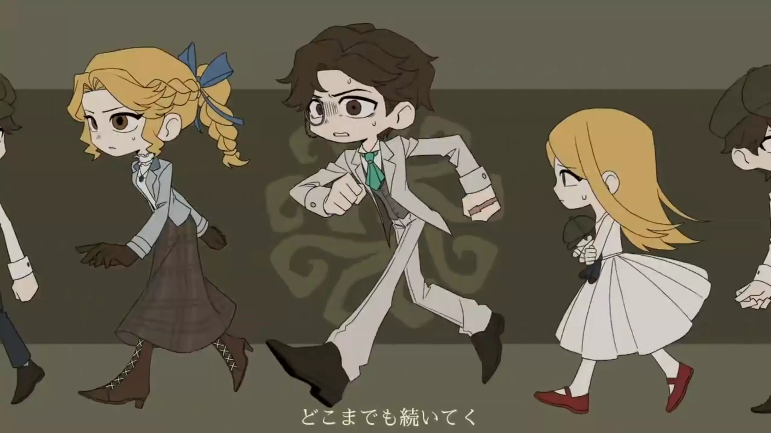 这是一组《纪念碑谷》循环之室主题手书创作图,呈现了游戏中的标志性角色,有持花的尖帽角色、不同造型的列队角色等,展现出充满循环感的创意视觉内容。