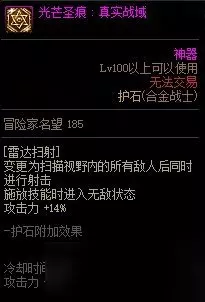 护石对两个部分进行了优化。 (1)原技能的锁定范围约是角色前方800px(4:3窗口横向显示范围800px,16:10与16:9窗口横向显示范围850px),佩戴护石后如图所示瞄准框变红,可以锁定身后的敌人,技能范围约增加至角色前后各800px,大大增加了输出范围和便捷性。 (2)使角色在释放雷达扫射过程中进入无敌状态,增强了输出环境,也可以应对一些副本机制。 伤害提升率31%,并减少了5%的冷却时间,属于优质护石建议佩戴。