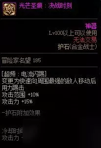 护石对两个部分进行了优化。 (1)原技能只能锁定5秒内攻击过的敌人,佩戴护石后可以直接瞬移到未攻击过的敌人面前,索敌范围750+75px(4:3窗口横向显示范围800px,16:10与16:9窗口横向显示范围850px),索敌时与角色面朝方向无关,只要进入范围,即使背对敌人也能释放。 (2)将技能原本的两段伤害整合到撞击中,删除了图中的炮击过程,让技能变得更加干脆。 伤害的综合提升率在34%左右,属于优质护石可以考虑佩戴。