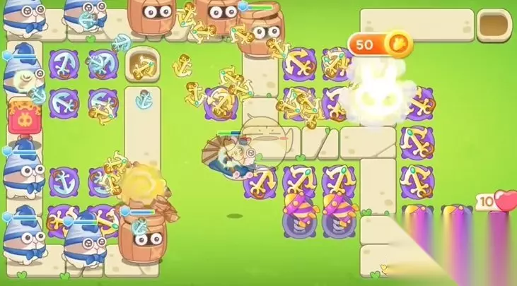 2、清理出空位后,继续补充船锚,金币充足的情况下记得升级炮塔;