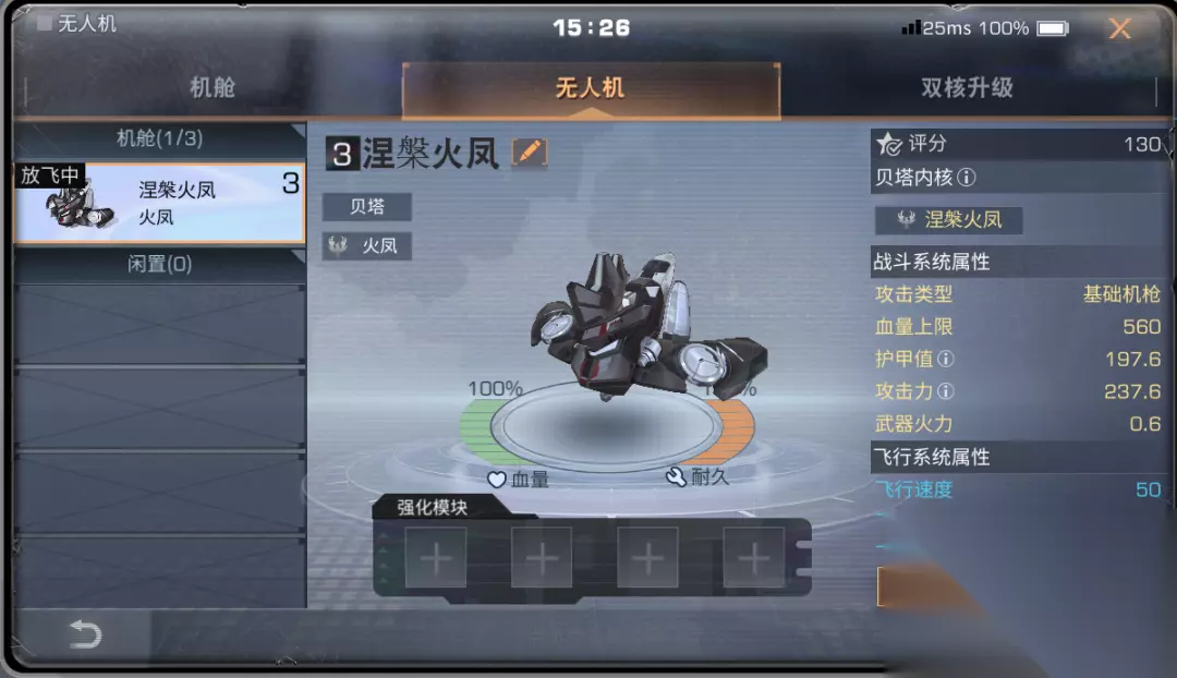 强化模块推荐 在组装强化模块时 首选提升血量上限的能量核心、发动机 这样可以保证火凤涅槃无人机的存活 提升在战场上涅槃复生的成功率
