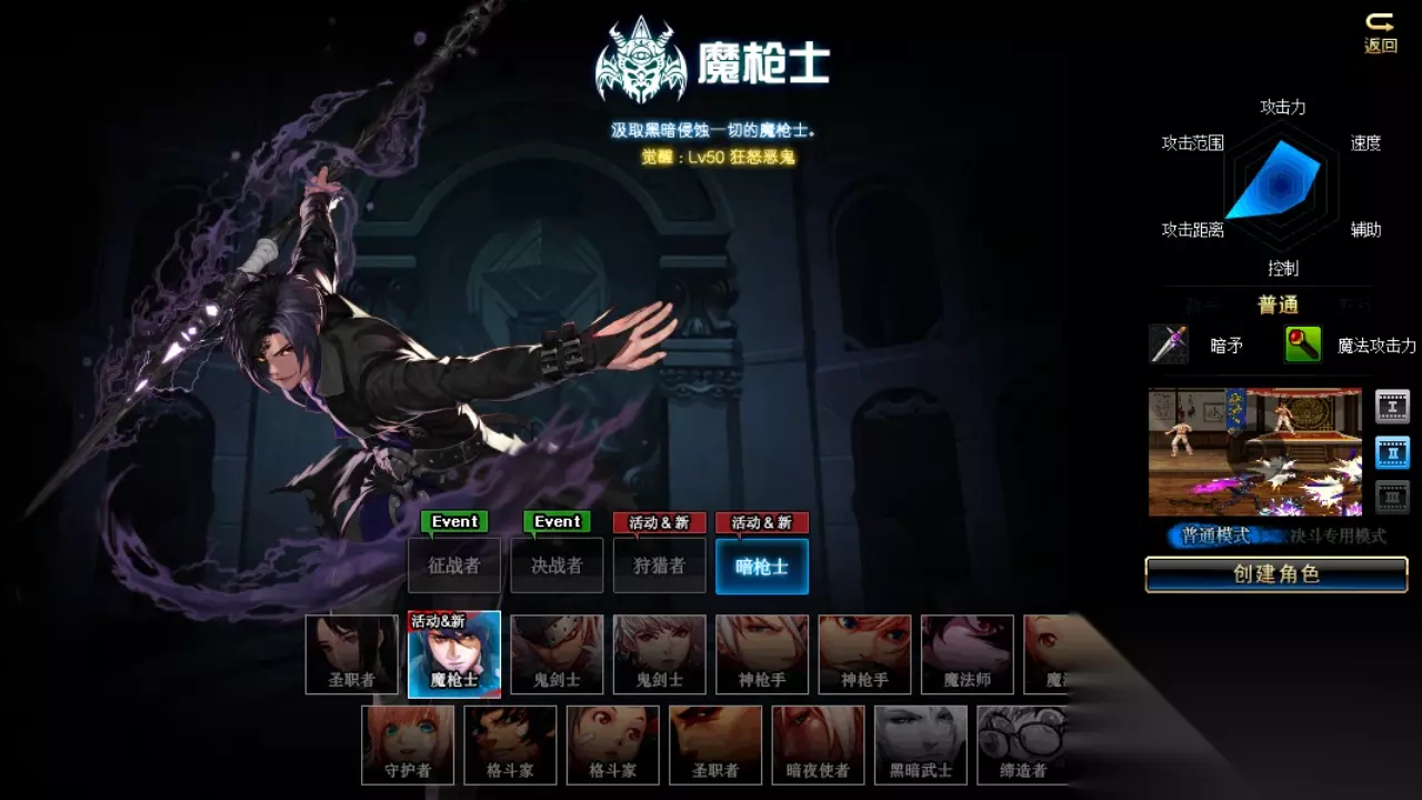 成功通关后即可完成转职了,转职后可以使用所有魔枪士武器,佩戴所有防具,起源版本魔枪士武器为四种:长枪、战戟、光枪、暗矛,无特殊武器均可相互穿戴,转职后的狩猎者基础攻击动作也会发生变化哦