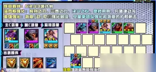 NO.2 平民枪手转九五 阵容主C是莎弥拉,后期可以替换成两星的厄斐琉斯,两人的装备都是通用的,优先找AD输出装,轻语必备,避免打不动前排,第二件选择巨杀,方便打斗士武器,第三件的话选择比较多,任意的输出装都是可以的,包括无尽、杀人剑、羊刀等。其余的装备多做肉装,给到前排的猪妹以及蕾欧娜。