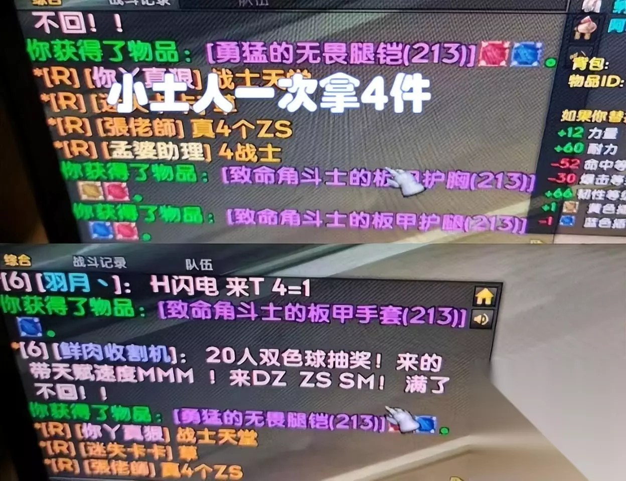 3 大团掉落的东西毕竟还是很贵的。真正的偶皇直接去宝库接他们了,尤其是那些小土著。别看他们在NAXX,他们在宝库里可是很受欢迎的。已经是第二组了,去了一次宝库,就出了4件装备。队友们称之为“战士天堂”!