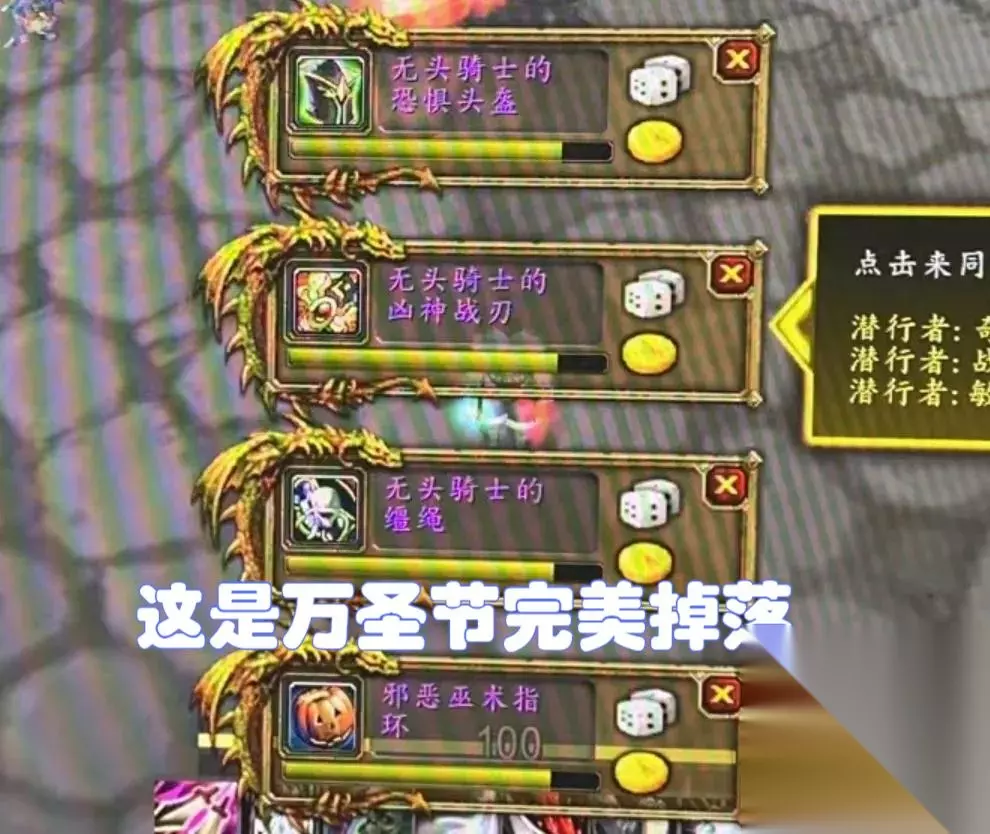 不过欧洲葡萄酒节皇帝和欧洲万圣节皇帝差距太大了。这个盗贼玩家刷了一次无头骑士,不仅掉了无头骑士的缰绳,还掉了无头骑士的头盔和无头马。骑士烈战刀,这3件装备/坐骑都是额外掉落的装备,小檀这两天把无头骑士刷了几十次了,从来没见过这3件额外掉落的装备。而且这个玩家一下子就能玩完,这运气好到爆炸。
