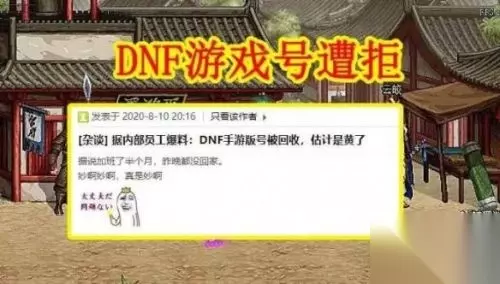 根据DNF目前所谓的内部员工透漏:DNF的手游号遭到拒绝,基本上短期内很难上线了。 如果是所谓的防沉迷,TX许多游戏有事用的同样的防沉迷设定和TP系统。 现在的CF和王者荣耀都是一个系统。所以如果是这个原因,估计都得做重新评估。 DNF手游攻略大全 内测激活码 公测时间爆料 职业加点大全 韩服安装教程 职业大全 转职加点 深渊副本 附魔大全 NPC汇总 宠物大全 新手攻略 材料价格