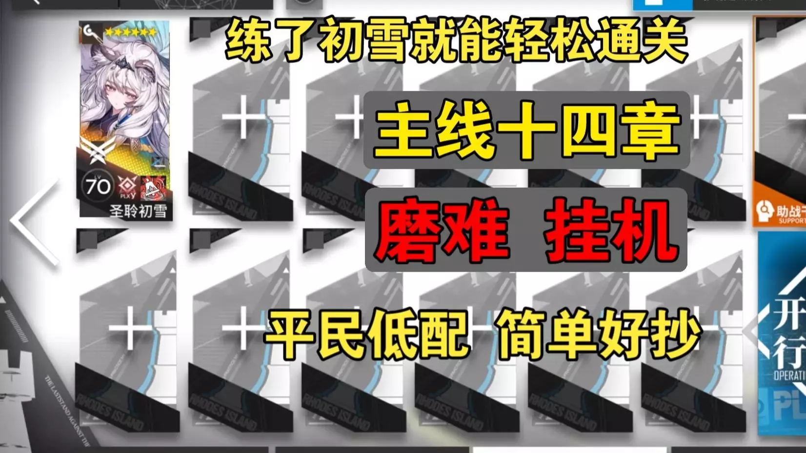 这是《明日方舟》主线十五章的平民低配通关攻略,练了干员初雪即可轻松通关,支持挂机/半挂机,当前先更新普通关攻略,H关攻略后续补上。
