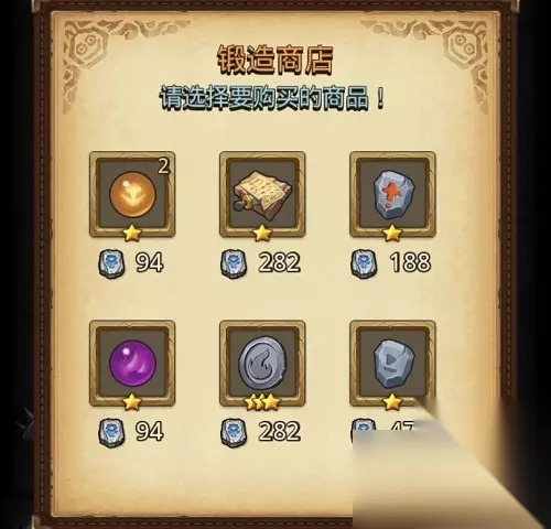 5、锻造商店 出售5件商品 包括随机普通刻印、锻造笔记、 神性结晶、魂能结晶、信仰之证等 额外出售无用刻印 买够5个镶嵌后击杀Boss 可合成猎王者刻印