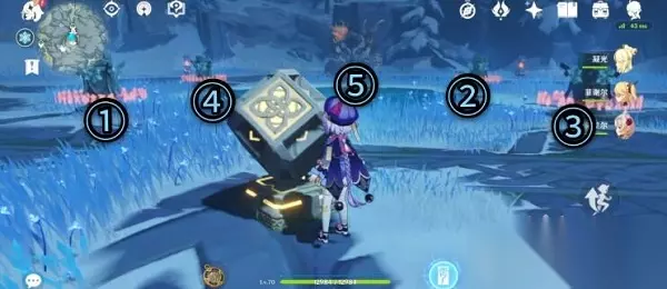 明面上的深赤之石只有两个,在坚冰的后面有两个洞窟,一个被石头封住,一个需要往里面走,有一些丘丘人,冰蚊子。 3.碎片三 具体位置:位于雪葬之都·近郊 从传送点出发,进入一个圆形战斗平台,开启机关,需按照温暖仙灵经过的顺序激活冰元素机关,并消灭苏醒的遗迹守卫与遗迹重机; 战斗中需要注意严寒值的高速堆积,战斗场地中不同时间会有不同位置的机关提供温暖;