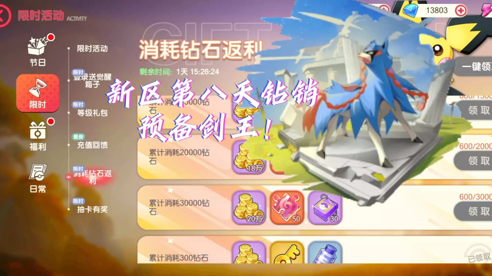 口袋觉醒小鳄鱼零氪新区准备做十月份剑王!