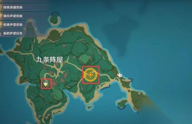 1.玩家需要传送到九条阵屋的位置,如果玩家地图上传送锚点未开。则可乘坐浪船前去地图中的位置。