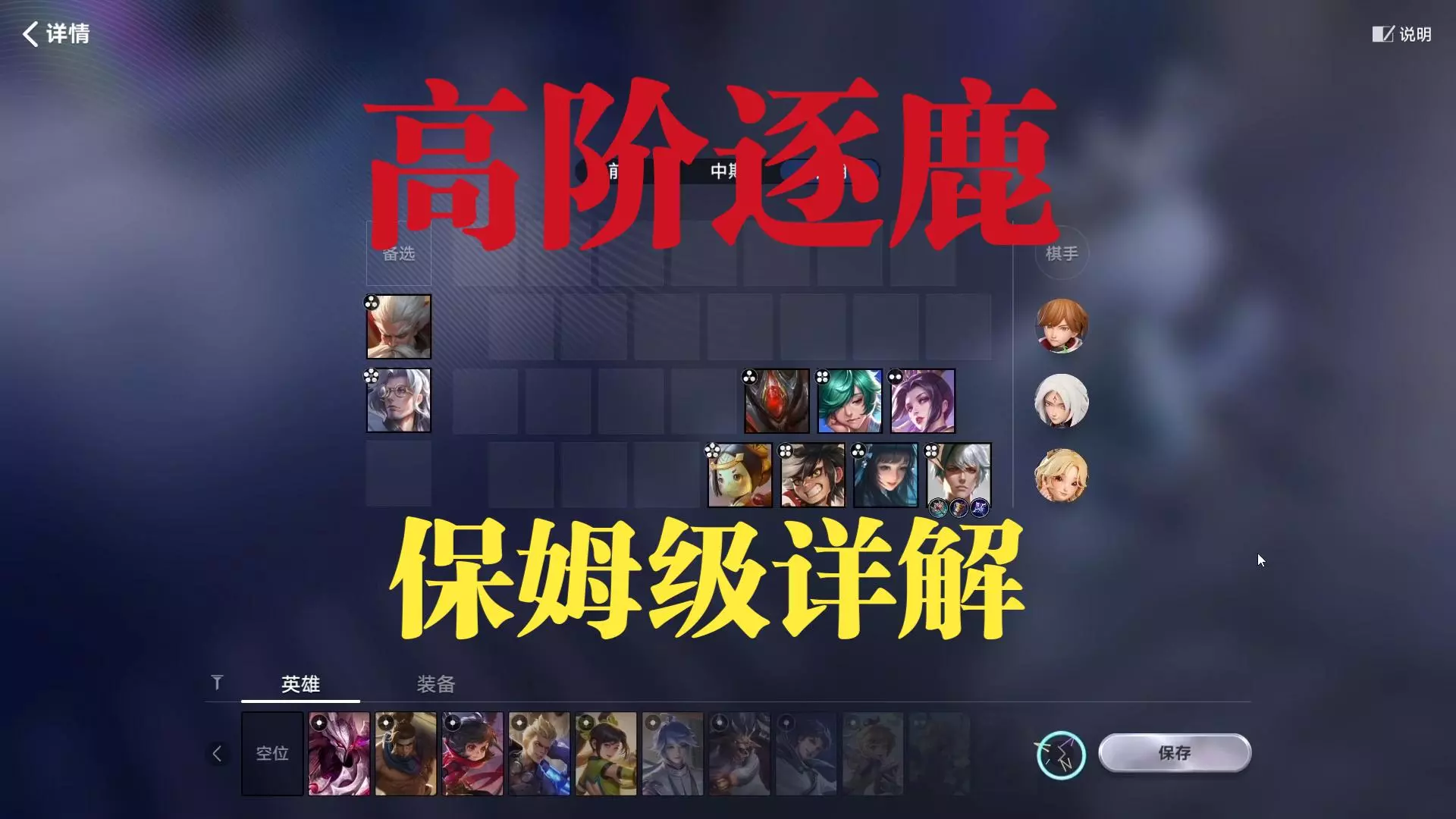这篇帖子针对王者万象棋的大河阵容做细节详解,还对该阵容的上一期相关内容进行纠正补充,展示了该阵容前中后期的英雄搭配等内容,助力玩家掌握大河阵容玩法。