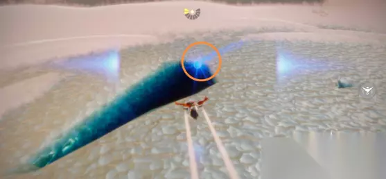 3、如果玩家在湖上找不到蓝色光芒的话,需要从冰窟窿滑下去进行收集,水之灵沉入湖底后只要轻轻触碰一下就能完成收集了。