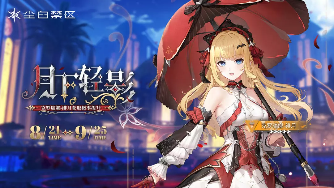 活动内容:活动期间开启「月下轻影」角色共鸣活动,【克罗瑞娜-绯月】获取概率提升!分析员可参与【特选当期·月下轻影】和【当期·月下轻影】两种类型的共鸣活动。