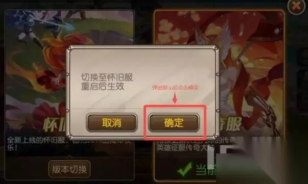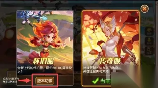 2、然后在这里可以选择怀旧服以及传奇服进行不同的切换。