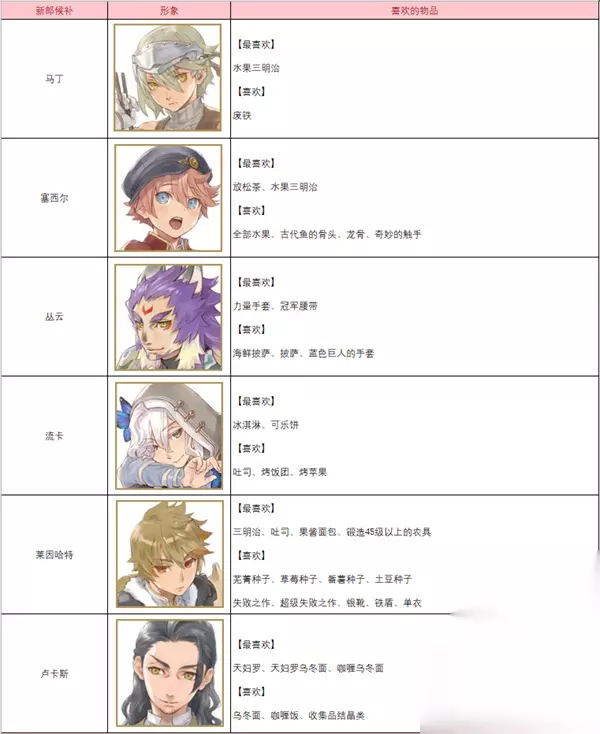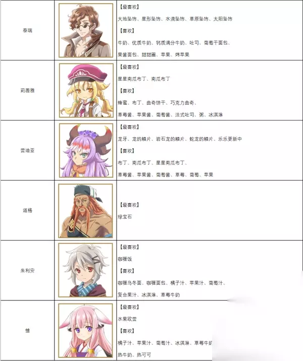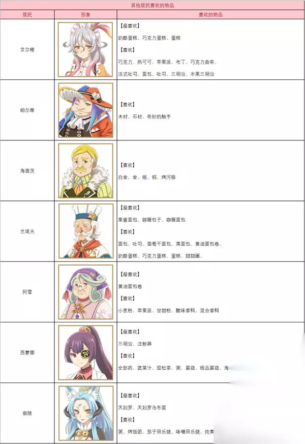 以上就是这篇文章有关符文工房5人物喜好一览表的所有内容了。