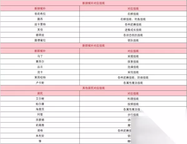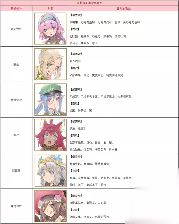 符文工房5人物喜好一览表 1、新娘候补。