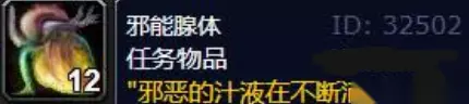 魔兽世界邪能腺体怎么获得 获得方法: 魔兽世界游戏中,邪能腺体是任务物品,在影月谷杀大型魔火双帆龙可以获得。玩家需要先接到“缓慢的死亡”任务,再去杀怪才会掉落邪能腺体。
