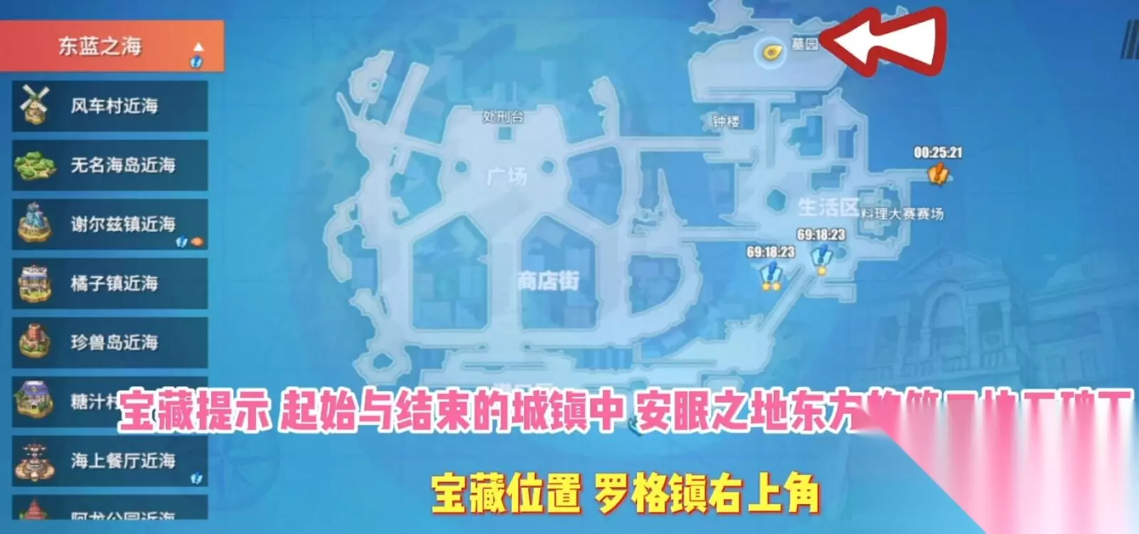 第三处宝藏: 罗格镇右上角,东方的第三块石碑下;