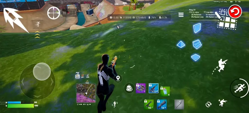 这是堡垒之夜手游的游戏内容展示,以最高画质144FPS运行,画面中呈现了玩家在游戏里战斗、移动、使用道具等操作,流畅的帧率为游戏操作提供了良好支持,助力玩家在对局中发挥。