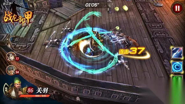 图4,关羽无双乱舞 1V1即时PK 千里之遥指尖单挑 《战龙卸甲》在PK系统的设计上,首度在手机游戏中实现了同步1V1即时PK。在《战龙卸甲》中,玩家所面临的对手不在只是机器人或不在线的对手,也不再用程序化的出招单纯靠数值来碾压,而是对战双方实时预判出招,考验双方对武将的理解,对操作的熟悉,真正让PK回归“人”的本源,让操作决定胜负,而不是数值。