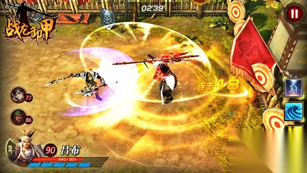图5,吕布单挑 摒弃摇杆手势点划出招手残党照样成高手 《战龙卸甲》摒弃了虚拟摇杆,采用手势点击滑动组合的方式,只需一根手指,即可实现走位、闪避、冲锋、连招等动作,手残党照样能练就神级操作。同时在战斗中,《战龙卸甲》采取类似于《剑灵》、《天堂永恒》等世界级动作网游常用的无锁定攻击模式,玩家不用手动选怪,只需操作武将出招、走位即可,真实考验玩家对空间和位置的判断能力,呈现最真实的战斗乐趣。