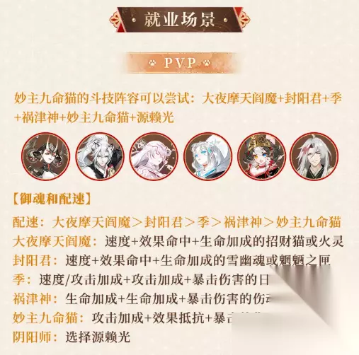 为大家推荐:阴阳师SP妙主九命猫怎么配队-妙主九命猫阵容搭配推荐 以上阴阳师SP妙主九命猫御魂搭配分享就是小编带来的图文介绍,更多手游攻略信息,请关注233乐园,小编将持续为您更新!
