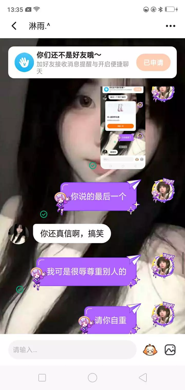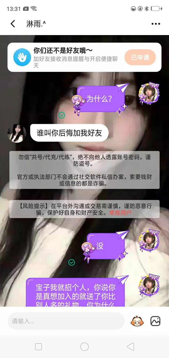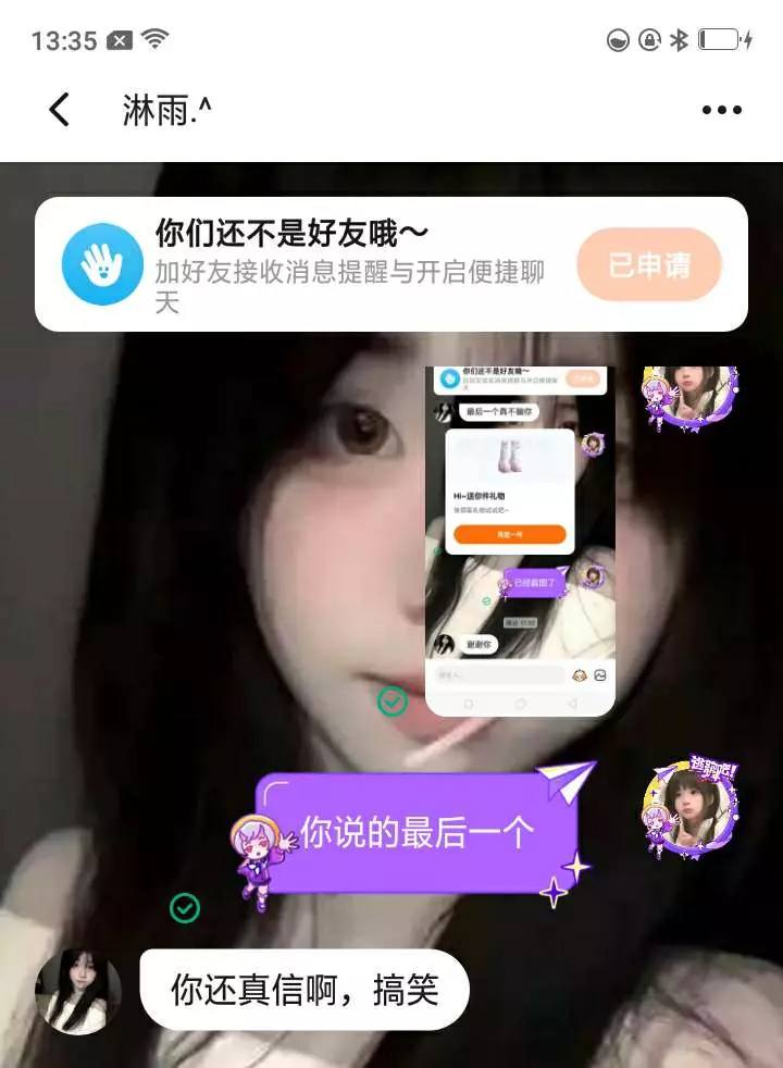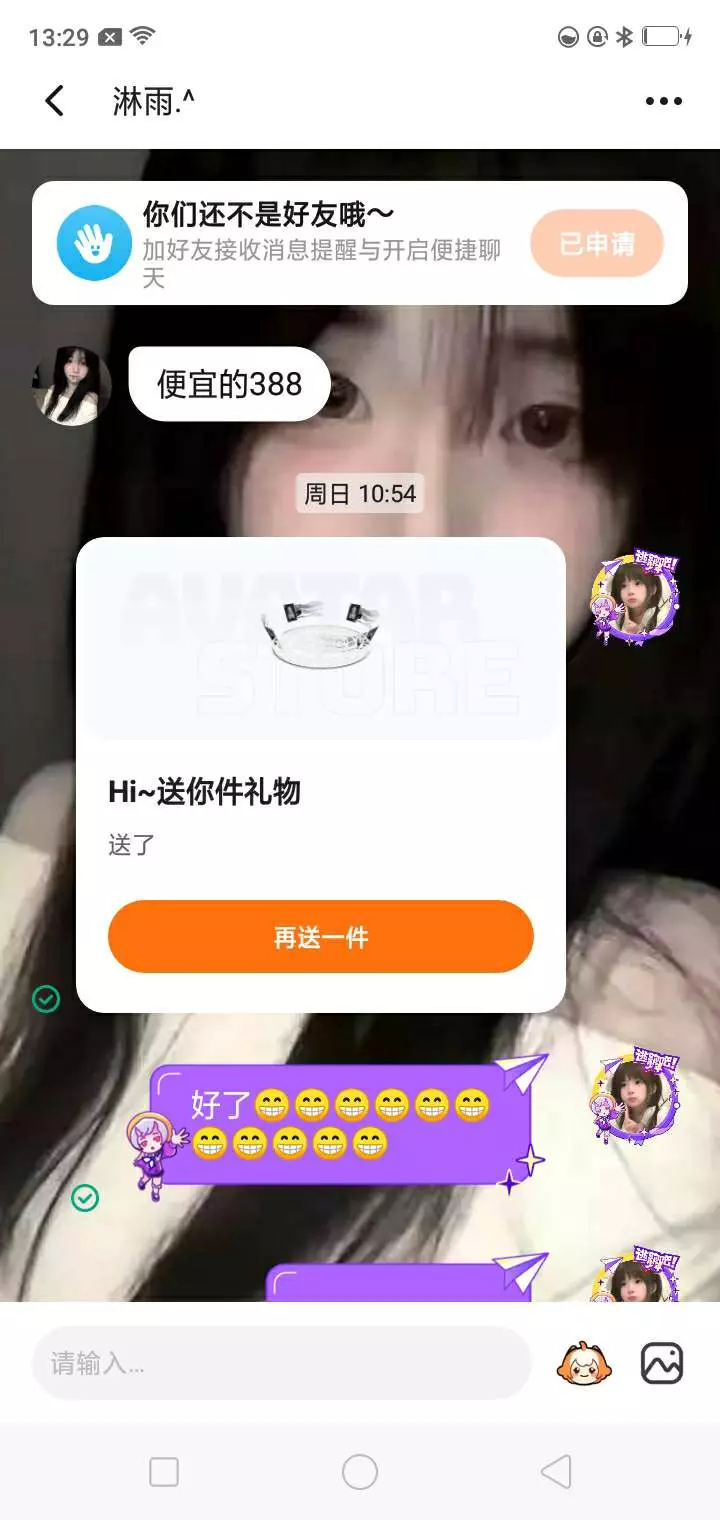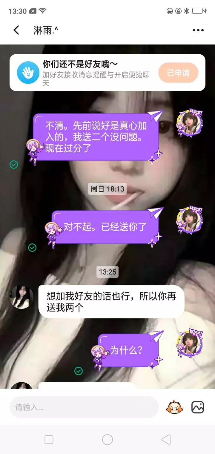 我们加了好友送了她个礼物,结果她还想要最后一个,我就送了。然后她又让我清她的心愿单。我说不行了,有点过分了。跟她说好了那个是最后一个。