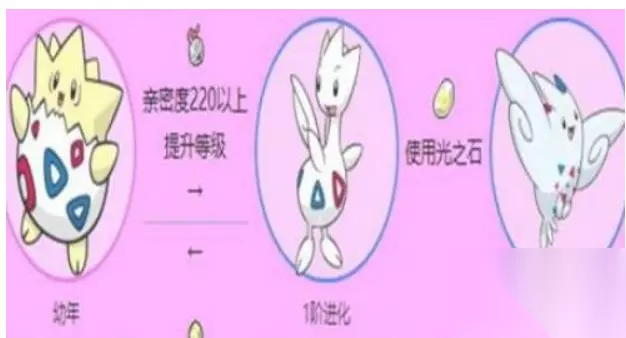 1、波克比能够进化两次,而且两次的进化方式有一点不同,这两次分别是亲密度进化和光之石进化。 2、第一次进化,当波克比的亲密度达到220时升级后就能够进化成为波克基古