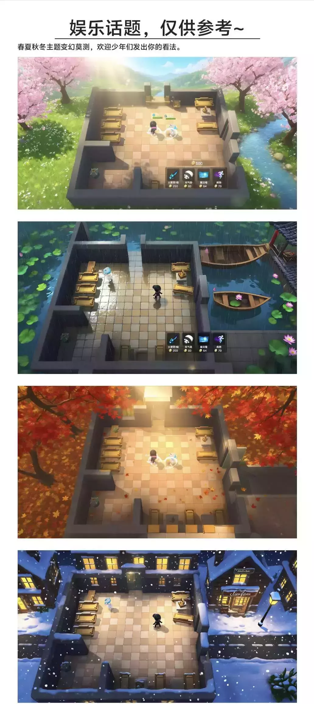 假如逃跑的地图变成以下春夏秋冬的风格你是否会喜欢呢?哪怕是类似的,欢迎讨论~