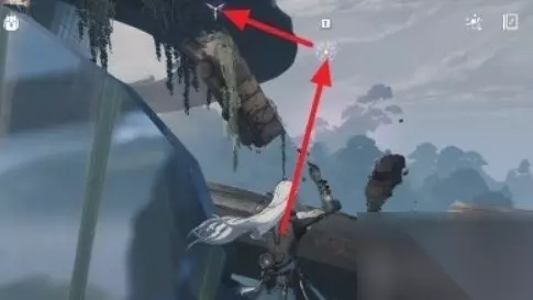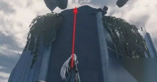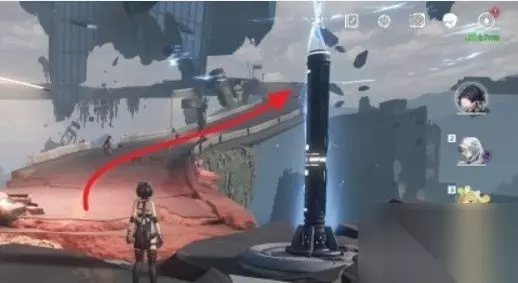 从传送锚点出发,沿着空中漂浮的公路往前走到下图箭头位置。